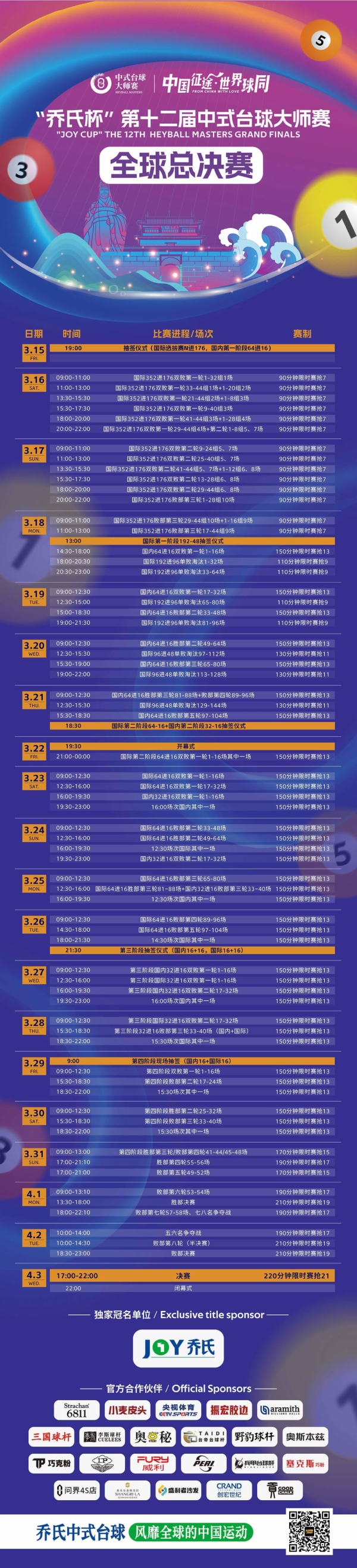 "乔氏杯"第十二届中式台球大师赛全球总决赛时间表